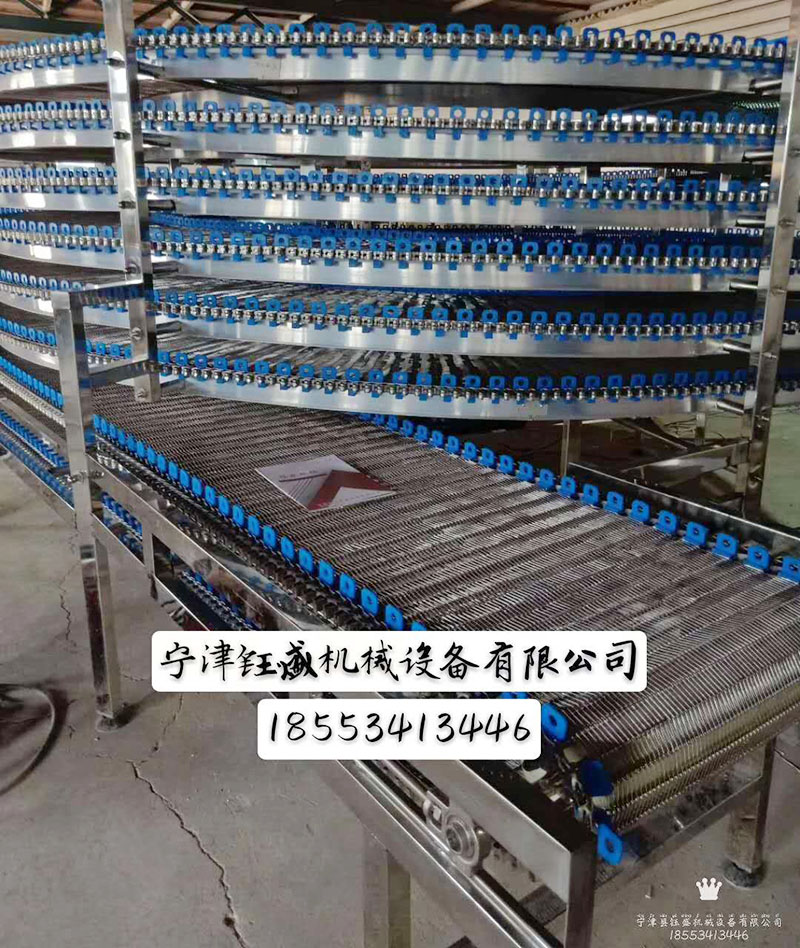 熔等行业的输送,通过选用不同的网带可以制作成储瓶台、提升机、杀菌机、蔬菜清洗机、冷瓶机以及肉食品输送等行业专用设备 。